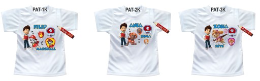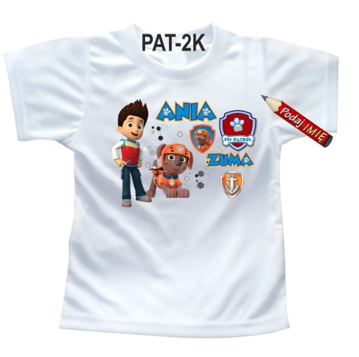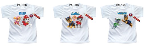 Spersonalizowana koszulka z imieniem dziecka i nadrukiem Psiego Patrolu.