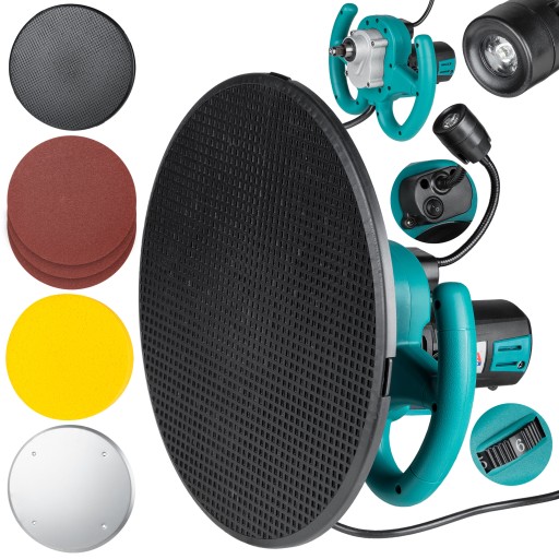 W zestawie znajdują się plastikowa tarcza siatkowa, tarcza metalowa, tarcza gąbkowa oraz 3 papiery ścierne, co sprawia, że jest to kompletny zestaw gotowy do pracy od razu po rozpakowaniu.