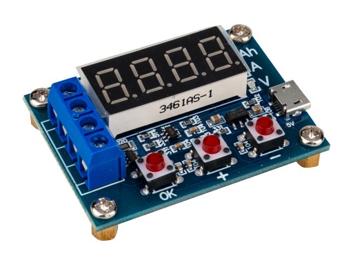 - Wyświetlacz naprzemiennie pokazuje aktualne napięcie, prąd rozładowywania oraz ilość rozładowanych mAh