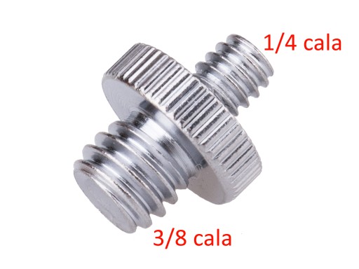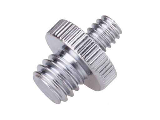 Precyzyjny stalowy adapter fotograficzny. Śruba która umożliwia połączenie dwóch gniazd żeńskich o średnicy 1/4 cala oraz 3/8 cala.