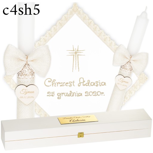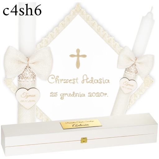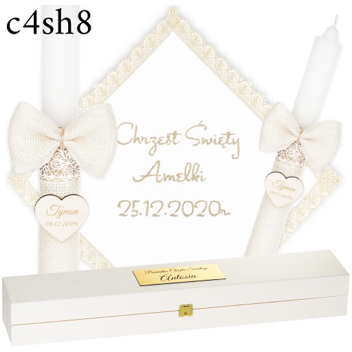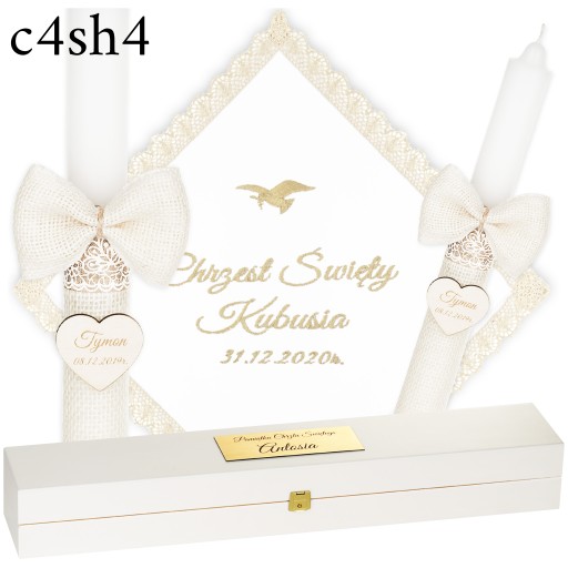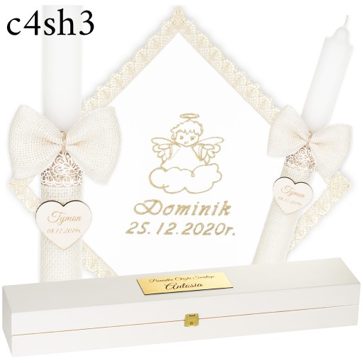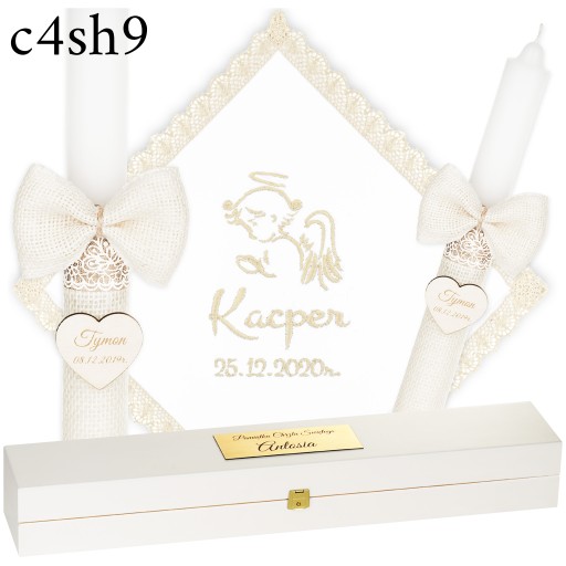 ŚWIECA NA CHRZEST + PUDEŁKO SZATKA I ŚWIECA DO CHRZTU HAFT + GRAWER - BOHO