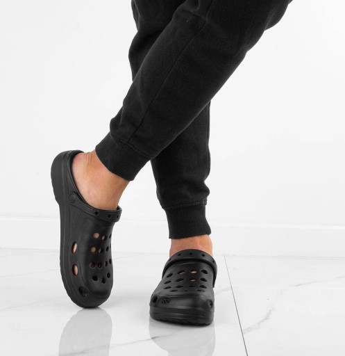 Od dłuższego czasu czarne klapki typu kroksy cieszą się ogromną popularnością. Stworzono je z myślą o osobach, które cenią sobie wygodę i uniwersalność. W tym celu wykorzystano najwyższej jakości materiał piankowy. Lekkie chodaki nie obcierają nogi, a przy pomocy specjalnego paska na pięcie staną się całkowicie stabilne. Doskonale sprawdzą się w okresie wakacyjnym - szczególnie na plażę, przy pracach ogródkowych lub zwyczajnych spacerach po mieście. Dodatkowo na komfort wpływa również płaska, ale profilowana podeszwa, która świetnie dopasowuje się do stopy.