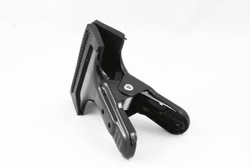 Klips został wykończony nasadką gumową, dzięki temu mocowanie jest stabilniejsze, nie ślizga się i nie rysuje powierzchni do których jest przytwierdzany.