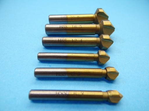 Zestaw 6 fazowników/frezów trzpieniowych GEKO HSS TIN 90 stopni od 6,3mm - 20,5mm