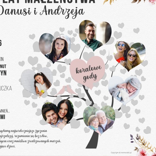 Plakat na DOWOLNĄ ROCZNICĘ ŚLUBU dla rodziców, dziadków, pary znajomych.