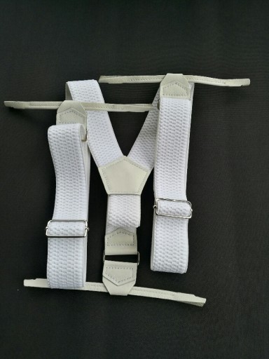 WYKONANE Z DOBREJ JAKOŚCIOWO GUMY SZELKOWEJ.POSIADAJĄ REGULACJĘ DŁUGOŚCI A SOLIDNE WSTAWKI SKÓRZANE DOBRZE UTRZYMUJĄ SPODNIE NA MIEJSCU.WSTAWKI WYKONANE SĄ Z WYSOKO GATUNKOWEJ SKÓRY LICOWEJ KOLORU BIAŁEGO DZIĘKI TEMU SZELKI BĘDĄ SŁUŻYŁY PRZEZ DŁUGI CZAS.ŚRODEK SKÓRZANEJ WSTAWKI JEST PRZYSTOSOWANY DO ZAPINANIA SZELEK NA GUZIKI.DO KAŻDEJ SZTUKI SZELEK DOSTANĄ PAŃSTWO 6 SZTUK GUZIKÓW GRATIS KOLOR CZARNY.GUMA SZEROKA NA 4 CM.ROZCIĄGAJĄCA SIĘ NA 170 CM.TO JEST JEDEN Z PIERWSZYCH FASONÓW SZELEK KTÓRE BYŁY SZYTE NA ŚWIECIE.KULTOWY STYL !!! ZDECYDOWANIE POLECAM !!!
