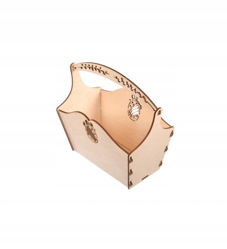 Drewniany koszyk wielkanocny z wyciętymi dekorami idealny do święcenia pokarmów,polecamy również do zdobienia metodą decoupage,pojemnik można również wykorzystać jako opakowanie prezentowe lub może być bazą pod stroik wielkanocny.