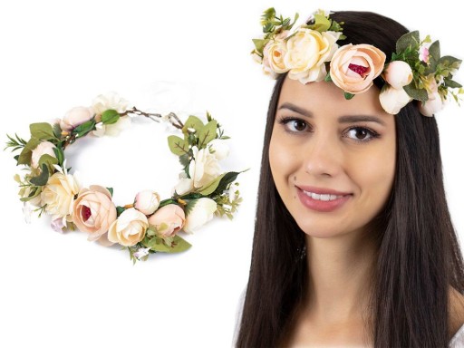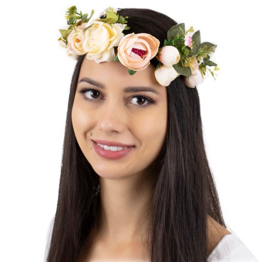 WIANEK na głowę BOHO kwiaty KREMOWY ślubny PIWONIE - 36945 Miss Glow