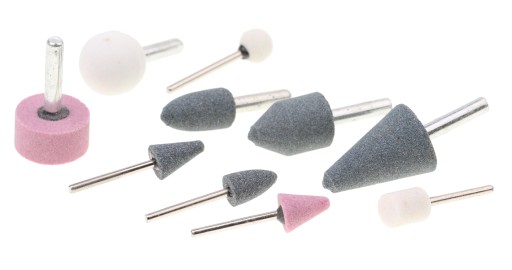- Sprawdzają się do czyszczenia i gratowania. 5 kamieni z 3 mm trzpieniem oraz 5 z 6 mm trzpieniem.