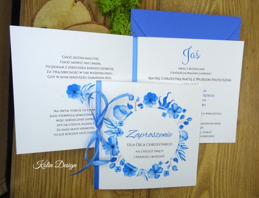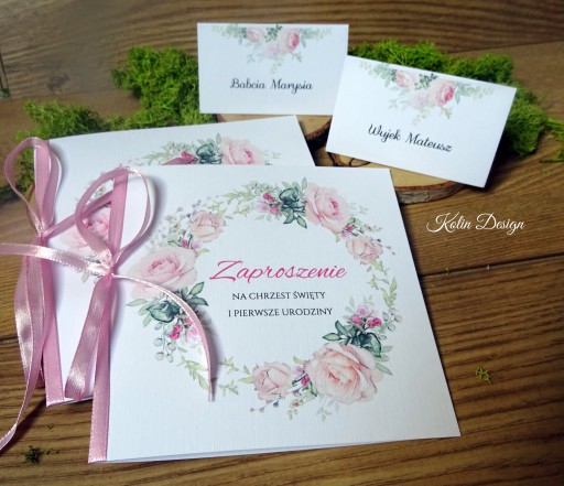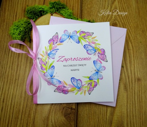 Zaproszenie dla rodziców Chrzestnych " wianki - z wstążką"