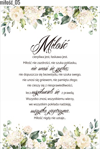 Duża tablica z Hymnem o Miłości rozmiarze 60x90cm