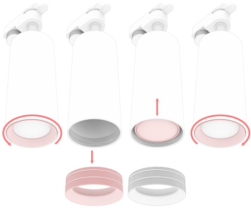 Lampa szynowa na możliwość przesuwania na szynie i obracania dzięki czemu gwarantuje szerokie możliwości tworzenia aranżacji świetlnych. Lampę możemy wpinać w dowolnym miejscu szyny.