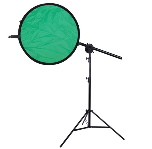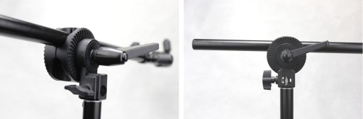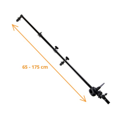 Solidny i trwały uchwyt służący do mocowania blend. Bardzo przydatny wtedy, gdy nie ma możliwości samodzielnego trzymania blendy. Zamocowaną na uchwycie blendę możemy ustawić w dowolnym położeniu i pod dowolnym kątem. Uchwyt posiada regulowany kołowrotek, który umożliwia mocowanie blendy do statywów oświetleniowych oraz umożliwia obrót belki trzymającej blendę o 360stopni. Ta funkcja pozwala na dowolne ustawienie kątu w jakim blenda będzie podtrzymywana. Płynna regulacja długości belki umożliwia zamocowanie blend o zróżnicowanych średnicach, od tych mniejszych o przekątnej 65cm do dużych blend posiadających przekątną 175cm. Aby całość była stabilna, należy wykorzystywać uchwyt z solidnym statywem oświetleniowym (pasuje do sprzedawanych przez nas statywów oświetleniowych: w806)