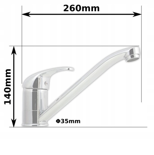 - Typ: Mieszająca, jednootworowa, jednouchwytowa, stojąca, wylewka ruchoma długa