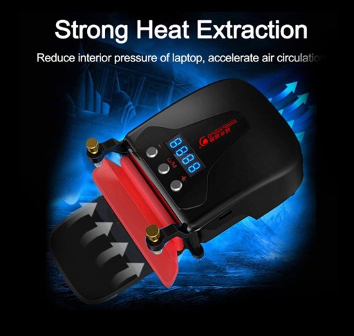 REGULACJA PRĘDKOŚCI - wentylator zewnętrzny posiada przyciski, którymi możemy regulować ilość obrotów na sekundę a tym samym ilość chłodnego powietrza przepuszczanego do laptopa. Urządzenie posłuży nam zarówno podczas przegrzania laptopa jak i podczas pracy na nim zapobiegając podwyższeniu się temperatury.