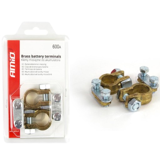 ✔️ Klemy wykonane są z mosiądzu dzięki temu dobrze przewodzą prąd i nie ulegają korozji.