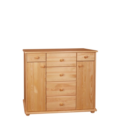 Komoda firmy Drewal2-Meble-Filipek wykonana jest w całości z litego drewna sosnowego (+plecy i dna szuflad, to płyta pilśniowa) czyli z naturalnego ekologicznego materiału. To wyróżnia nasze meble, wykonanie tylko z jednolitej grubości naturalnego drewna - nie idziemy na kompromisy.