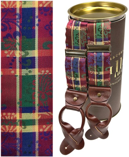 Подтяжки в клетку бордового цвета с ШЕЛКОВЫМИ пуговицами.