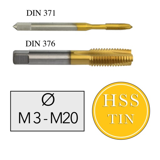 Profesjonalne gwintowniki maszynowe prosty [przelotowy] z powłoką TIN do gwintów metrycznych zwykłych.
