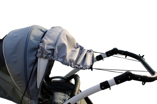 Daszek wykonany jest z impregnowanej i atestowanej tkaniny stosowanej do produkcji wózków dziecięcych.