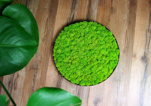 Kto powiedział, że rama musi być prostokątna lub kwadratowa? Mech kulisty w okrągłej “tacy” prezentuje się zjawiskowo! Możesz go powiesić na ścianie, ale też wykorzystać jako ozdoba stołu!