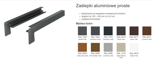 - Zaślepki ALUMINIOWE Zaślepki dostępne w kpl po 2 szt. Zaślepki zamawiane razem z parapetami zawsze dobieramy kolorystycznie do parapetów.