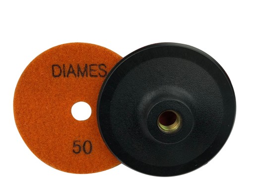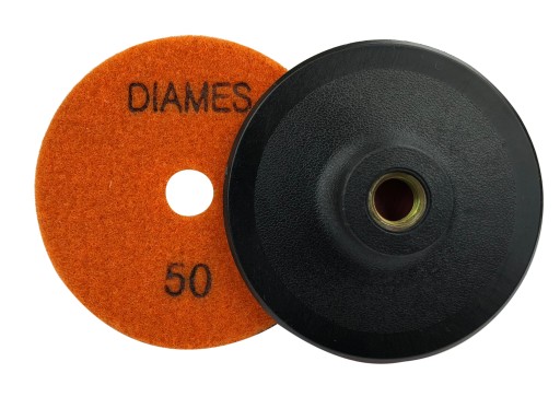 DYSK POLERSKI DIAMENTOWY FI 100MM - GRADACJA #50 DO POLEROWANIA KAMIENIA, GRANITU, GRESU NA SUCHO + UCHWYT PLASTIKOWY FI 100 MM M14 W ZESTAWIE.