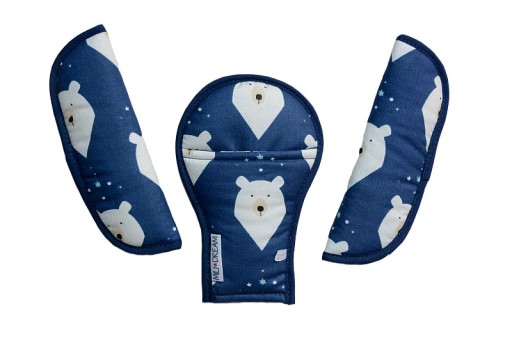 Wypełnienie nakładek stanowi antyalergiczna, certyfikowana włóknina. Jest miękka, stąd też nakładki bardzo dobrze zabezpieczają przed otarciami i są wygodne dla maluszka. Wypełnienie jest wszywane wewnątrz do tkanin zewnętrznych, oraz dodatkowo przepikowane, dzięki temu nie przemieszcza się podczas użytkowania i prania.