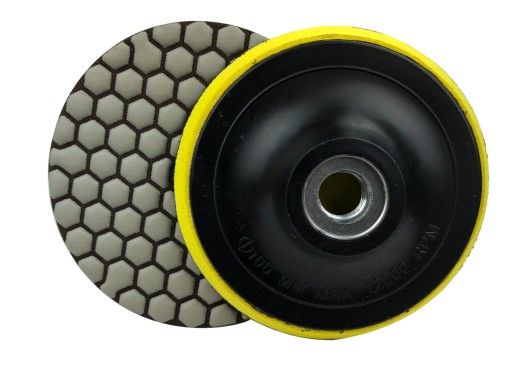 DYSK POLERSKI DIAMENTOWY FI 100MM - GRADACJA #200 DO POLEROWANIA KAMIENIA, GRANITU, GRESU NA SUCHO + UCHWYT PLASTIKOWY Z PIANKĄ FI 100 MM M14 W ZESTAWIE.