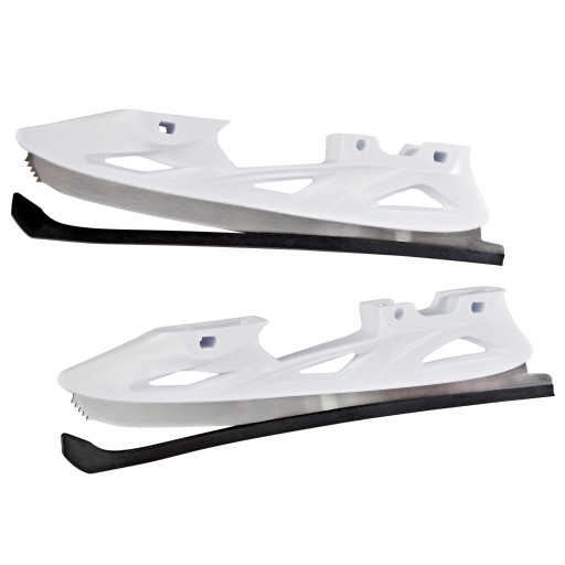 W komplecie znajdują się osłony na część stalową łyżwy (na zdjęciach) oraz klucze umożliwiające samodzielną wymianę płóz w rolkach.