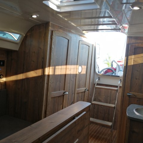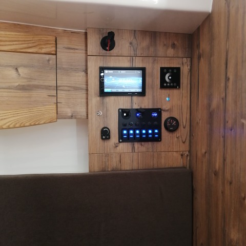 Został on wyposażony ponadstandardowo w wielofunkcyjny dotykowy panel multimedialny, w każdej kabinie zainstalowano gniazdka 230V wraz z 2 gniazdkami USB 2100 mA umożliwiające bezpośrednie ładowanie urządzeń elektronicznych,ponadwymiarowe koje rufowe,kuchenkę mikrofalową,toaletę morską, , lodówkę, webasto i itp.