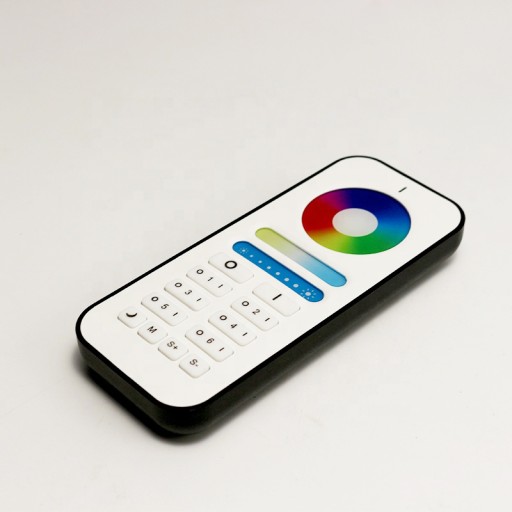 Pilot do LED za sprawą swojego kompaktowego kształtu idealnie leży w ręku i wygodnie się go obsługuje. Strefy wybiera się za pomocą klawisza. Pilot do taśm LED zasilany jest dwoma bateriami AAA. Pilot posiada dotykowe regulatory: koloru, ściemniania oraz temperatury barwy. Możesz kontrolować poszczególne strefy, każda strefa może być przypisana do wielu kontrolerów, lub możesz kontrolować wszystkie strefy na raz.