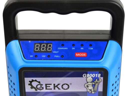 Automatyczny prostownik 7.5A do ładowania akumulatorów 6V i 12V. Ładowarka obsługuje akumulatory o pojemnościach 5 - 200 Ah. W prostownik wbudowano mikroprocesor, który steruje procesem ładowania. Woltomierz umożliwia szybką ocenę stanu naładowania baterii.