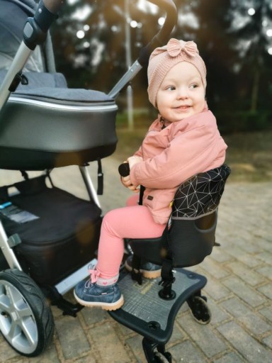 - Duża powierzchnia antypoślizgowa platformy redukuje ryzyko poślizgnięcia się dziecka na platformie oraz odblaskowe elementy dla dodatkowego bezpieczeństwa dziecka