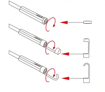 - Zestaw dodatkowych uchwytów w tym : haczyk, magnes, nakrętkę chroniącą gwint