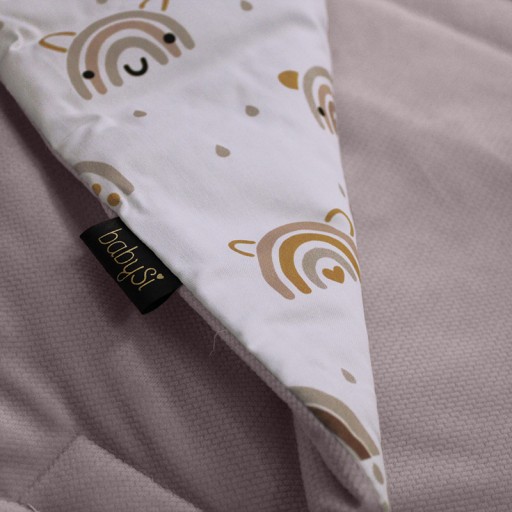 - tkaniny i wypełnienie - dla zapewnienia najwyższego komfortu użytkowania i w trosce o delikatną skórę maluszka, wewnętrzna strona produktu została wykonana z wysokiej jakości 100% naturalnej satynowej bawełny o gramaturze 130g/m2 zgodnej z certyfikatem Oeko-Tex 100. Zewnętrzną stronę otulacza stanowi wysokiej jakości, przyjemny w dotyku velvet o niebanalnym wyglądzie (gramatura tkaniny to 250 g/m2). Materiałem wypełniającym jest antyalergiczne wypełnienie o odpowiedniej grubości, dzięki czemu produkt nie zajmuje zbyt wiele miejsca w foteliku i pozwala na dokładne dopasowanie pasów do ciała dziecka, aby było bezpieczne. Jednocześnie grubość otulacza daje komfort i pozwala utrzymać ciepło.