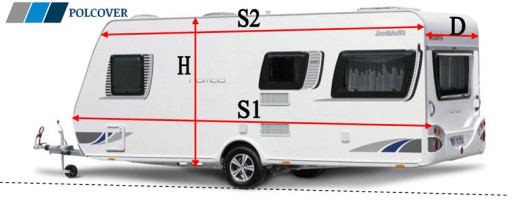Wymiar H (wysokość) to wysokość samej zabudowy (nie do ziemi) ewentualnie z relingami (my, wykonując pokrowiec, dodajemy do tego naddatek na antenę/klimatyzację itp.)