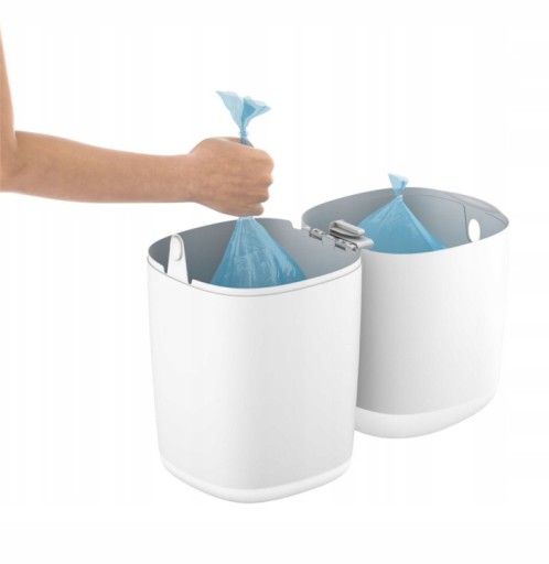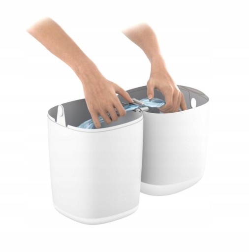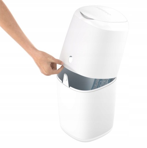 - Mechanizm pojemnika nie wymaga zawijania każdej pieluszki z osobna - po prostu wciśnij brudną pieluszkę przez szczelinę pojemnika. Dzięki takiemu rozwiązaniu zużycie folii jest kilku krotnie mniejsze niż w przypadku podobnych produktów konkurencji. Po zapełnieniu pojemnika (około 30 pieluszek) wystarczy odciąć worek z pieluszkami i zawiązać węzeł na dnie nowego worka - pojemnik jest gotowy do ponownego użycia.