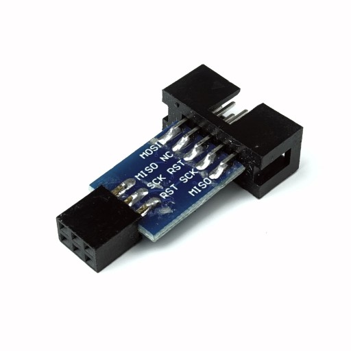 Przejściówka pomiędzy 10 pinów męskich i 6 pinów żeńskich popularnego złącza KANDA ISP, pozwalające podpinać popularne programatory do złącz 6 pinowych. Przykładowo dzięki niej można podpiąć się bezpośrednio pod złącze 6-pinowe w Arduino.