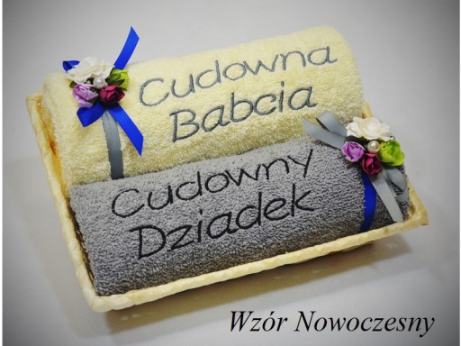 WYJĄTKOWY PRAKTYCZNY Prezent dla Babci i Dziadka 2 DUŻE Ręczniki z Haftem