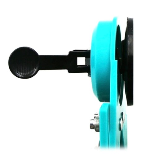 Przymiar mocowany za pomocą gumowej przssawki. Jeśli chcesz wykonywać otwory na mocno nieregularnej powierzchni, gdzie przyssawka nie będzie prawidłowo stabilizować prowadnicy wystarczy przytrzymać urządzenie ręką.