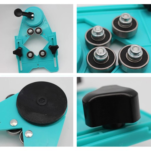 Prowadnica ułatwiająca wykonywanie otworów za pomocą otwornic, koronek i wierteł w płytkach ceramicznych, gresie, glazurze, szkle, metalu i innych materiałach.