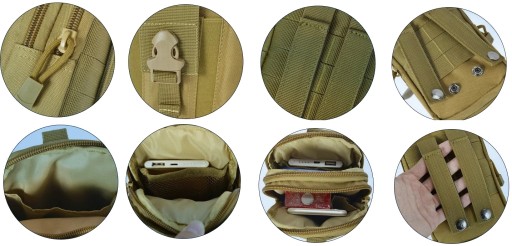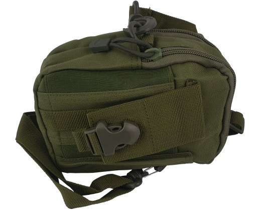 Sprawdzi się doskonale przy pasie, na ramieniu lub też doczepiona do większego plecaka