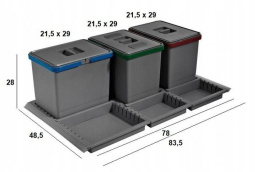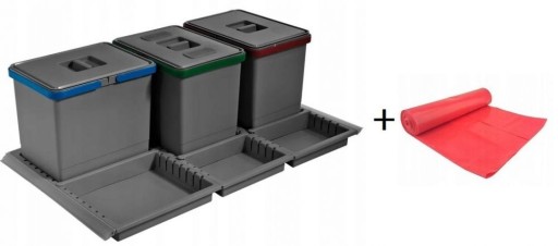 - solidne plastikowe uchwyty zapobiegające zsuwaniu się worków na śmieci do wnętrza koszy oraz pozwalającymi na higieniczne wkładanie i wyjmowanie koszy z sortownika