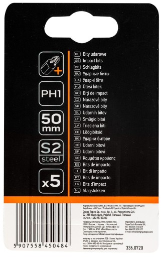 Bity udarowe S2, 50 mm, PH1 - 5 szt., NEO 09-575