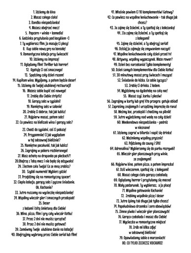Nr tekstów: czarne proponujemy dla Chłopaka od Dziewczyny, a różowe od Chłopaka dla Dziewczyny