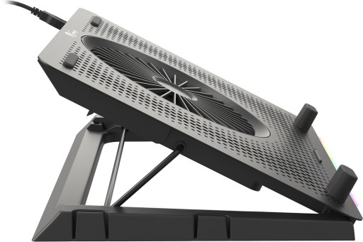 Oxid 450 RGB został wyposażony w stabilny oraz skuteczny system chłodzenia, który opiera się na czterech mniejszych wentylatorach wyprowadzających ciepłe powietrze spod laptopa i jednym dużym wentylatorze doprowadzającym chłodne powietrze. Rozmieszczenie wentylatorów zapewnia doskonałe i efektywne chłodzenie, a dodatkowa dwustopniowa regulacja prędkości obrotów pozwoli Ci zwiększyć chłodzenie podczas najbardziej zagorzałej rozgrywki.