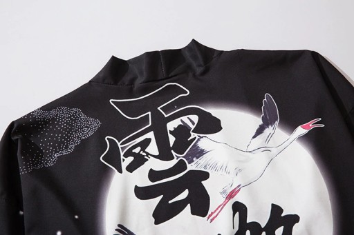 JAPOŃSKIE KIMONO HAORI SAMURAJ KANJI KUMO TSURU ŻURAW JIUTIAN SUWENIR M3