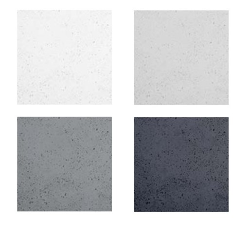 Okładziny dostępne są w kolorze: białym, naturalnym, ciemnym szarym lub antracycie o delikatnej porowatości lub gładkiej strukturze.