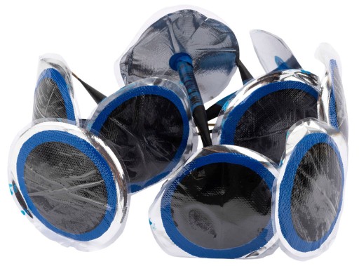 Kołki REDATS Premium można rozpoznać po aluminiowej folii zabezpieczającej i super cienkiej niebieskiej obwódce łatki, chroniącej przed zawijaniem. Zatopiony w kołku metalowy pręcik ułatwia przeciągnięcie trzpienia przez oponę.